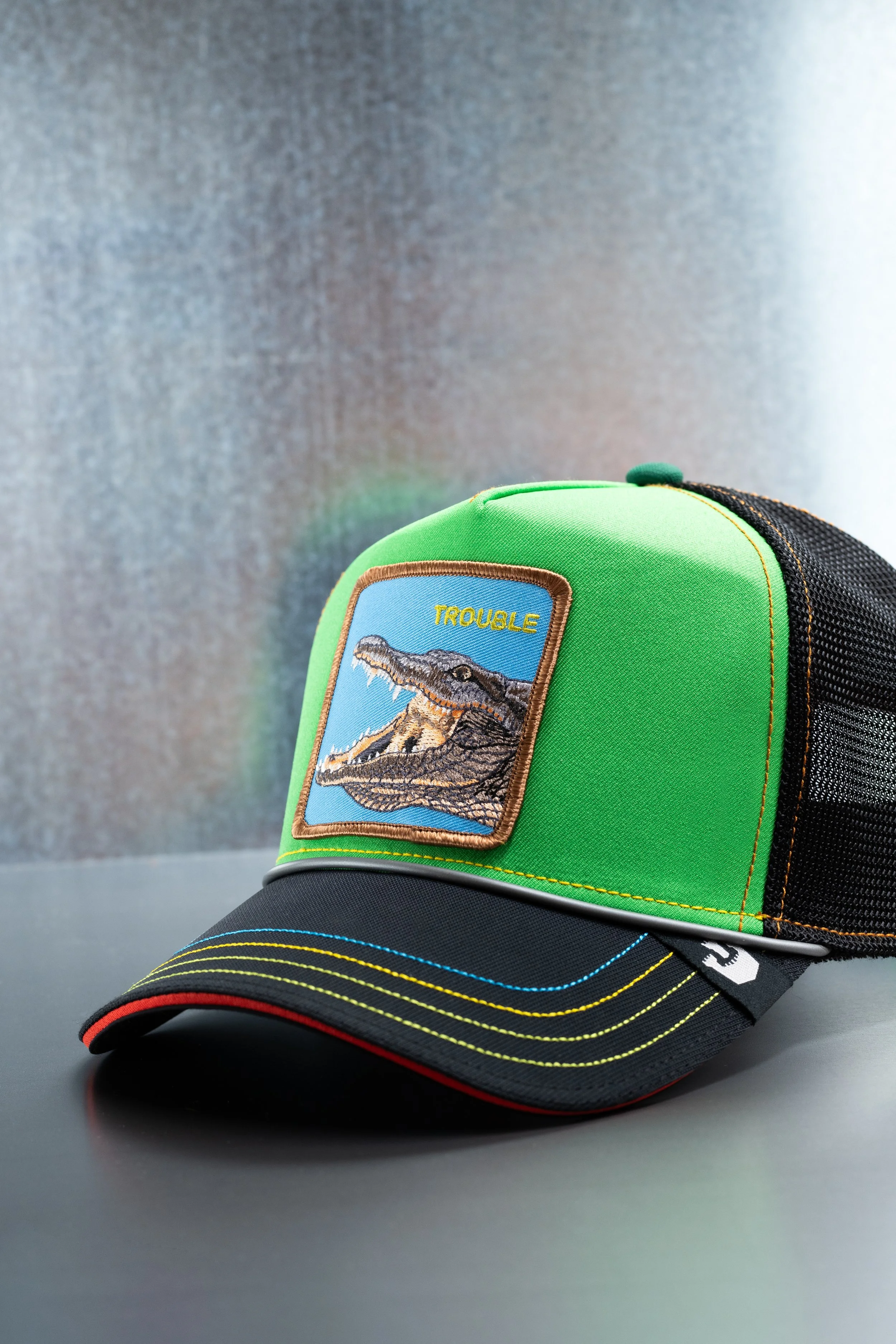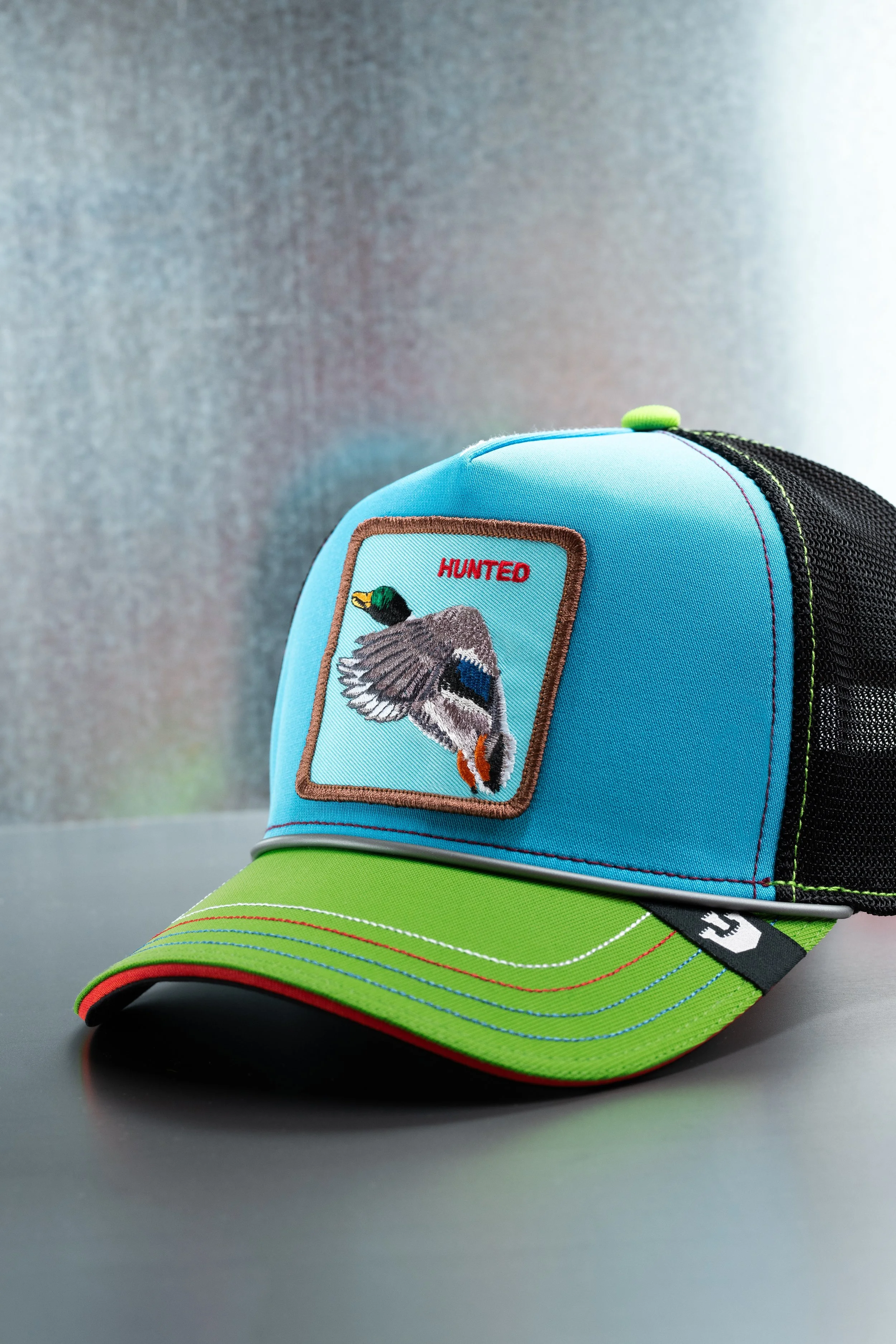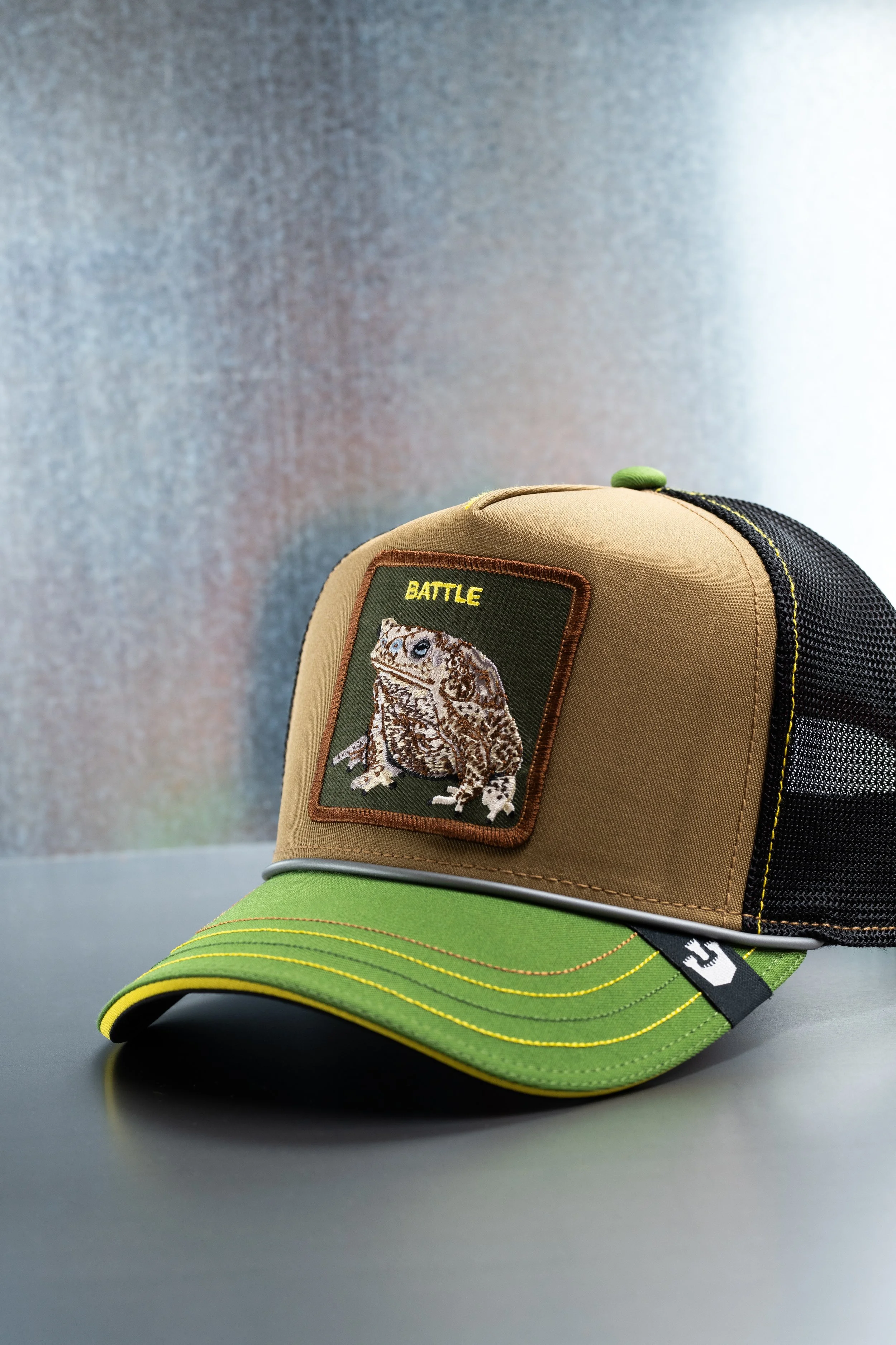 After the success of what was now Volume 1, I went back to the drawing board. I never like to rehash an idea that has no juice left, so I knew that something had to change to make the next collection fresh, but also create a cadence so we could keep the train rolling. Insert Coin Vol. 2 was based on gen 2 video gaming, still games that were largely played in arcades, but that many people took home on the first home consoles. Four styles all, again, based on the color story of the games themselves. I added a brim rope that emulated the controller cords from the consoles. Fun fact: The top brim stitching is actually Pantone matched to screens from each of the 4 games references